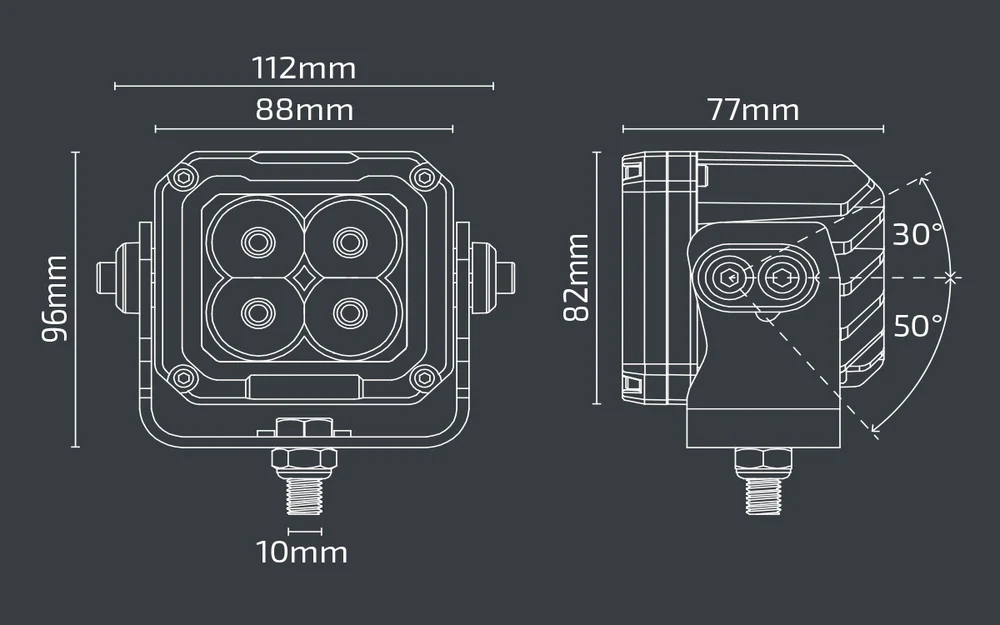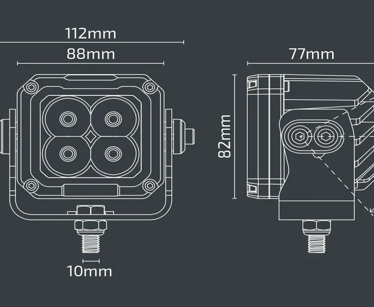 The NX500 3.5″ LED Work Light delivers an impressive 3400 lumens of bright, wide-angle light, perfect for 12V and 24V systems. With a rugged, stainless steel bracket and an IP69K waterproof rating, it’s built to withstand extreme conditions. The 5700K white light flood beam ensures excellent visibility during night time operations and challenging environments.