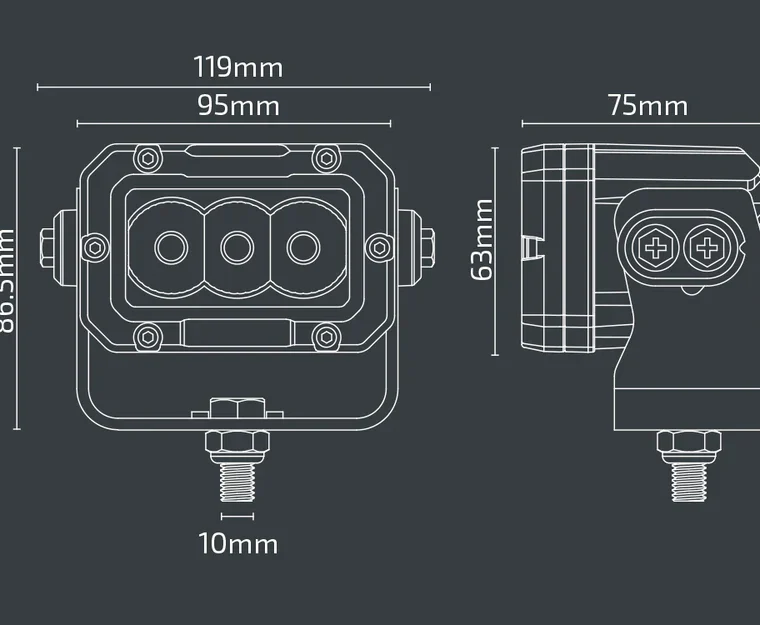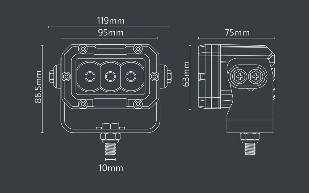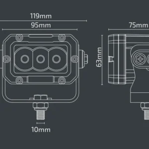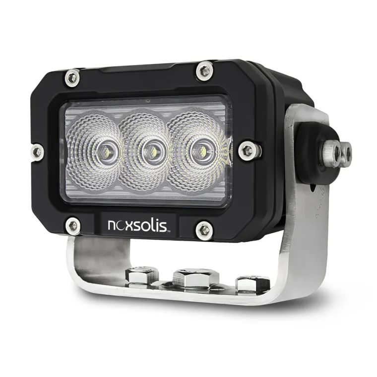 The NX513 3.7″ x 2.5″ LED Work Light delivers 2400 lumens of bright 5700K white light, making it ideal for both 12V and 24V systems. With a 30W power consumption and an IP69K waterproof rating, this compact light is built to withstand harsh conditions. Its durable construction ensures reliable performance in demanding environments.