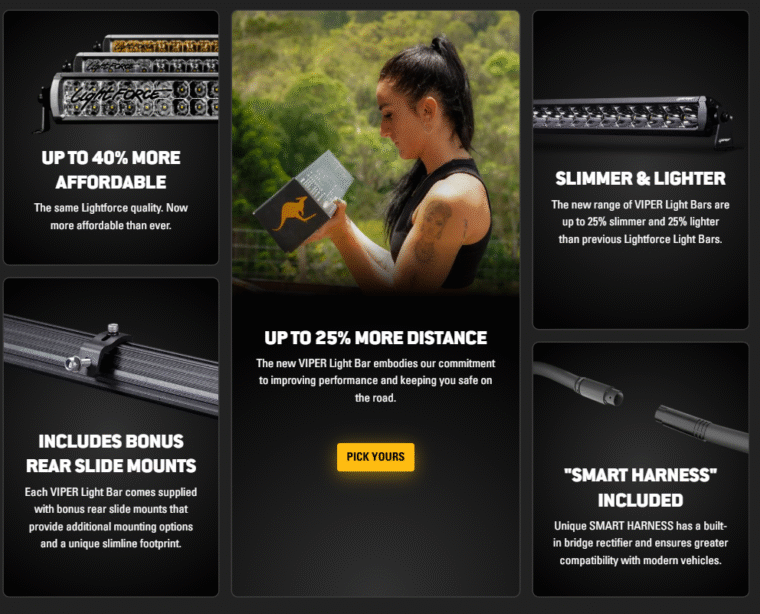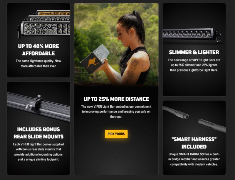 Engineered and built to Lightforce’s stringent specifications, the new range of VIPER Light Bars by Lightforce exceeds performance expectations. The unique screwless front bezel also enhances your vehicle’s factory look.