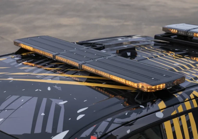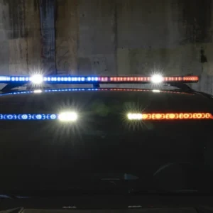 Full-size lightbar with 360-degree lighting and BroadBand Blue™ technology, delivering enhanced long-range visibility for emergency and highway patrol vehicles.